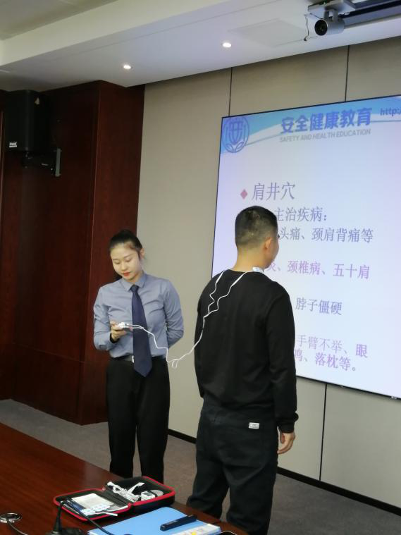 培訓(xùn)中,胡鴻雁老師講解了預(yù)防和應(yīng)對(duì)公共衛(wèi)生安全事故的應(yīng)急處理知識(shí),對(duì)急救知識(shí)進(jìn)行了標(biāo)準(zhǔn)示范,并邀請(qǐng)學(xué)員體驗(yàn)練習(xí),通過生動(dòng)的互動(dòng)教學(xué),讓現(xiàn)場學(xué)員掌握到初級(jí)救護(hù)、常見急救護(hù)等基礎(chǔ)知識(shí)和使用技能;同時(shí)胡老師還對(duì)常見職業(yè)病和慢性病的預(yù)防及改善、如何緩解心理壓力避免焦慮、室內(nèi)外空氣污染的防護(hù)知識(shí)等作了詳細(xì)闡述;最后,胡老師呼吁大家,從運(yùn)動(dòng)、飲食到心態(tài)全方位管理好自己的身心健康,讓健康常伴左右,以飽滿的熱情和激昂的狀態(tài)投入到工作生活中來。