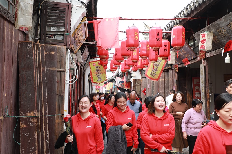 人間三月芳菲始,踏青賞花正當時。為進一步豐富員工文化生活,引領健康生活新方式,3月8日,尚澤集團組織了一場豐富多彩的婦女節采風之旅。活動開始前,集團高管代表公司向奮戰在各個崗位上的女員工們送上福利,并致以節日的問候和誠摯的祝福。上午10:30,載著歡聲笑語的大巴車從集團出發前往三河古鎮。