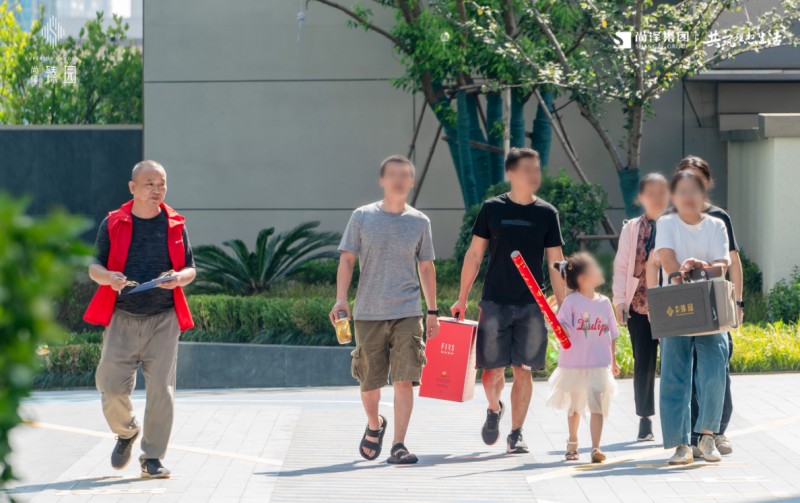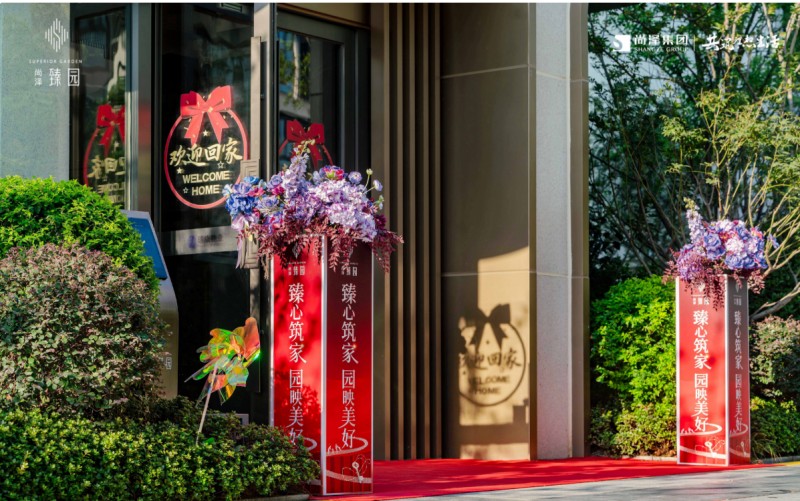 無數次的想象,也抵不過親眼所見家的美好。從小區入口到歸家步道,一草一木、一景一筑,都在洋溢著交付的喜悅。除此而外,工作人員精心布置的交付現場,紅毯鋪地、周到服務,緩緩指引家的方向,整個園區呈現出喜慶祥和的氣氛,賦予了生活的美好期許。