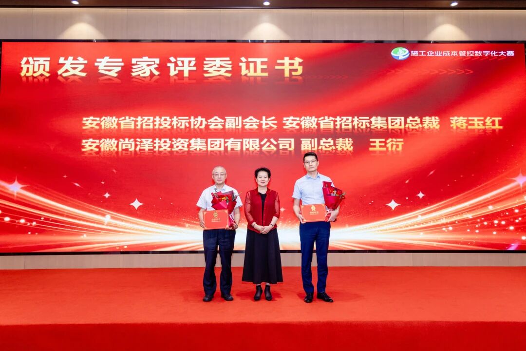 本次大賽采用異地混合評審機制,匯聚全國120余位專家,對1677份參賽案例進行了嚴格、公正的評判。為感謝他們的卓越貢獻,大會首先為專家評委頒布榮譽證書。在熱烈的掌聲中,安徽省招投標協會副會長、安徽省招標集團總裁蔣玉紅,安徽尚澤投資集團有限公司副總裁王衍上臺領取殊榮。